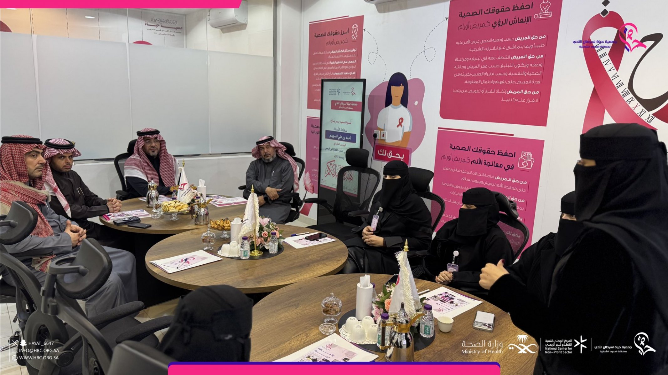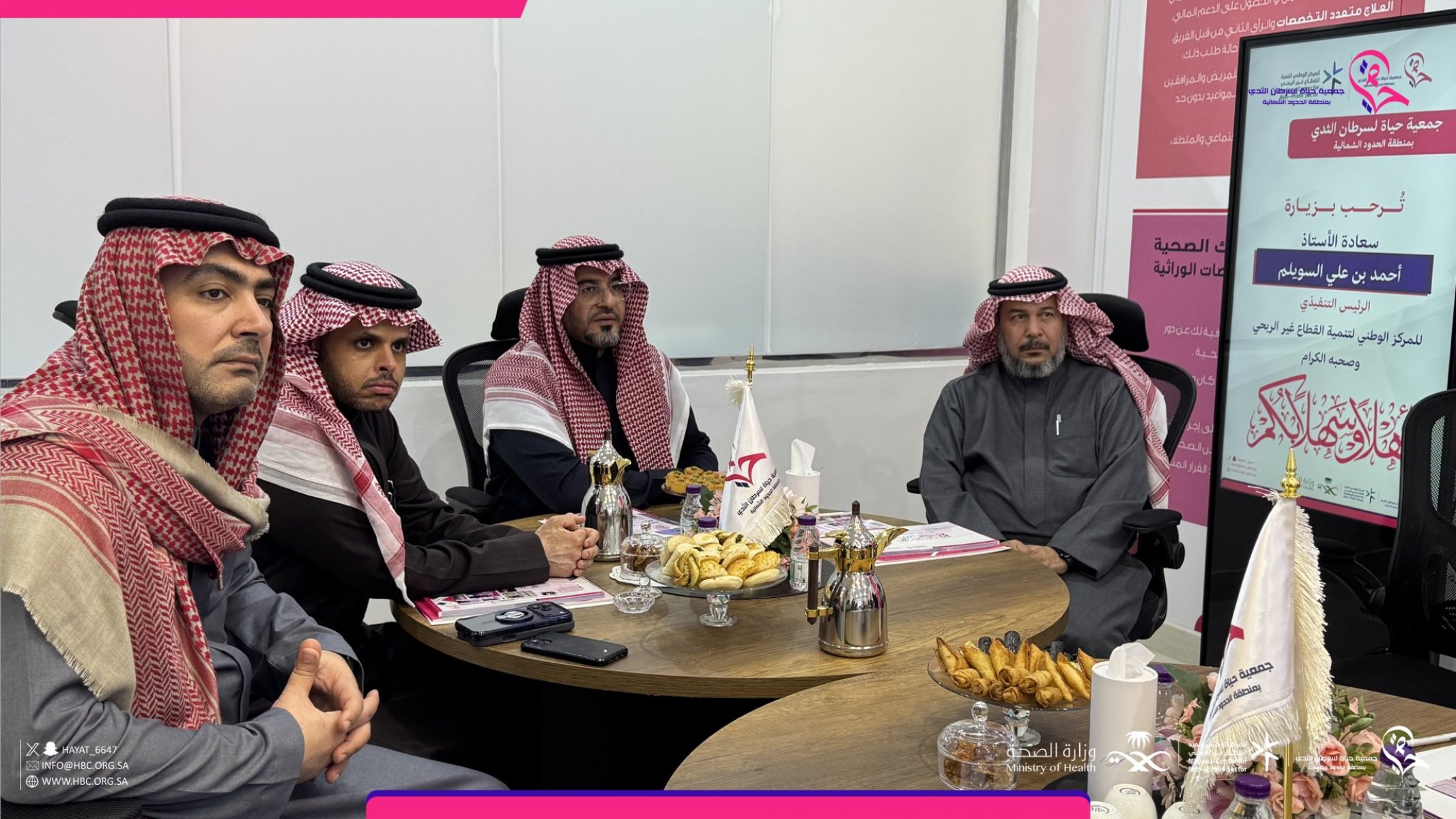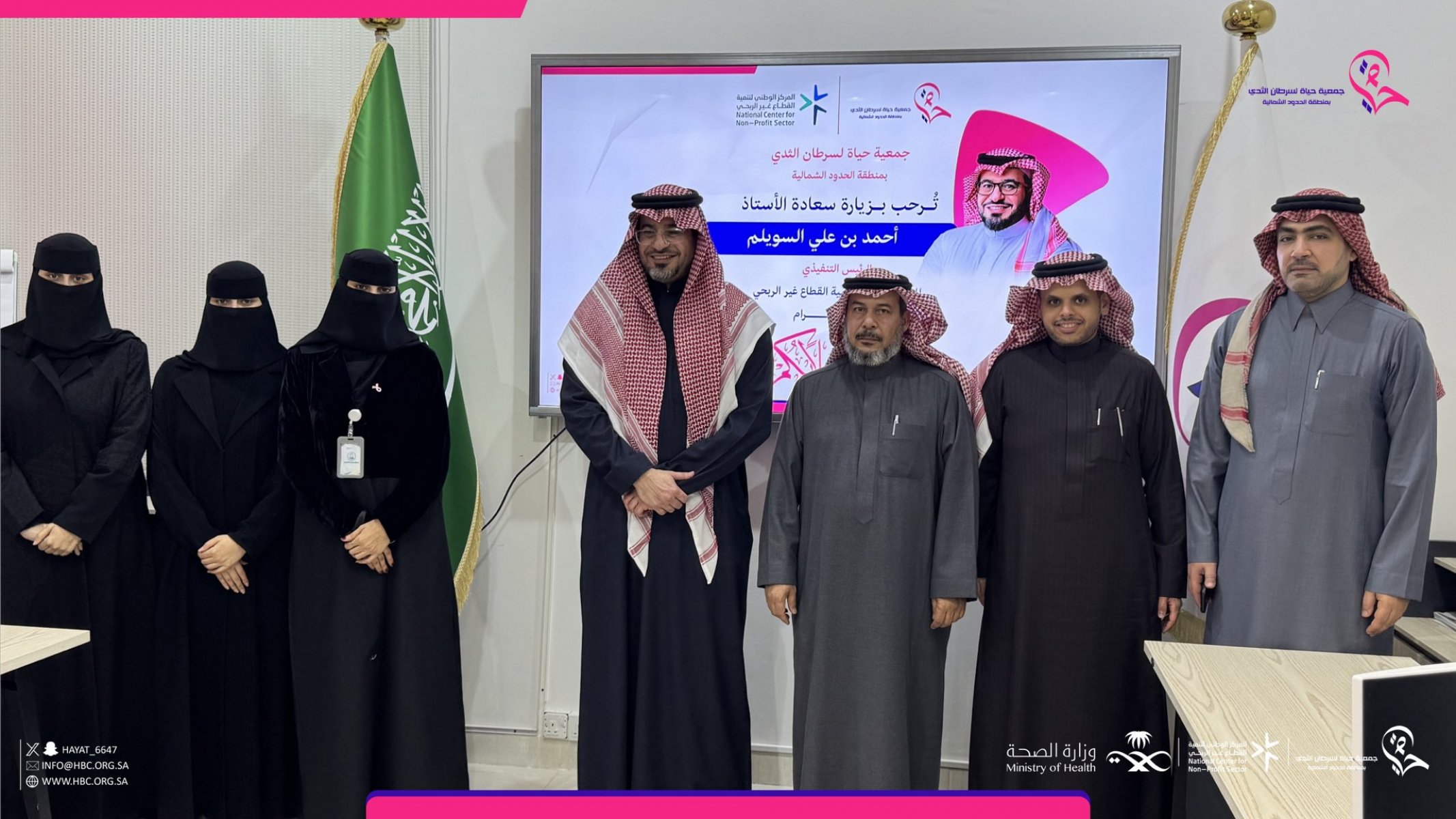 تشرّفت جمعية حياة لسرطان الثدي بمنطقة الحدود الشمالية بزيارة سعادة الأستاذ أحمد بن علي السويلم، الرئيس التنفيذي للمركز الوطني لتنمية القطاع غير الربحي، وصحبه الكرام، حيث جرى استعراض أعمال الجمعية ومبادراتها وبحث سبل دعم وتمكين القطاع غير الربحي بالمنطقة.